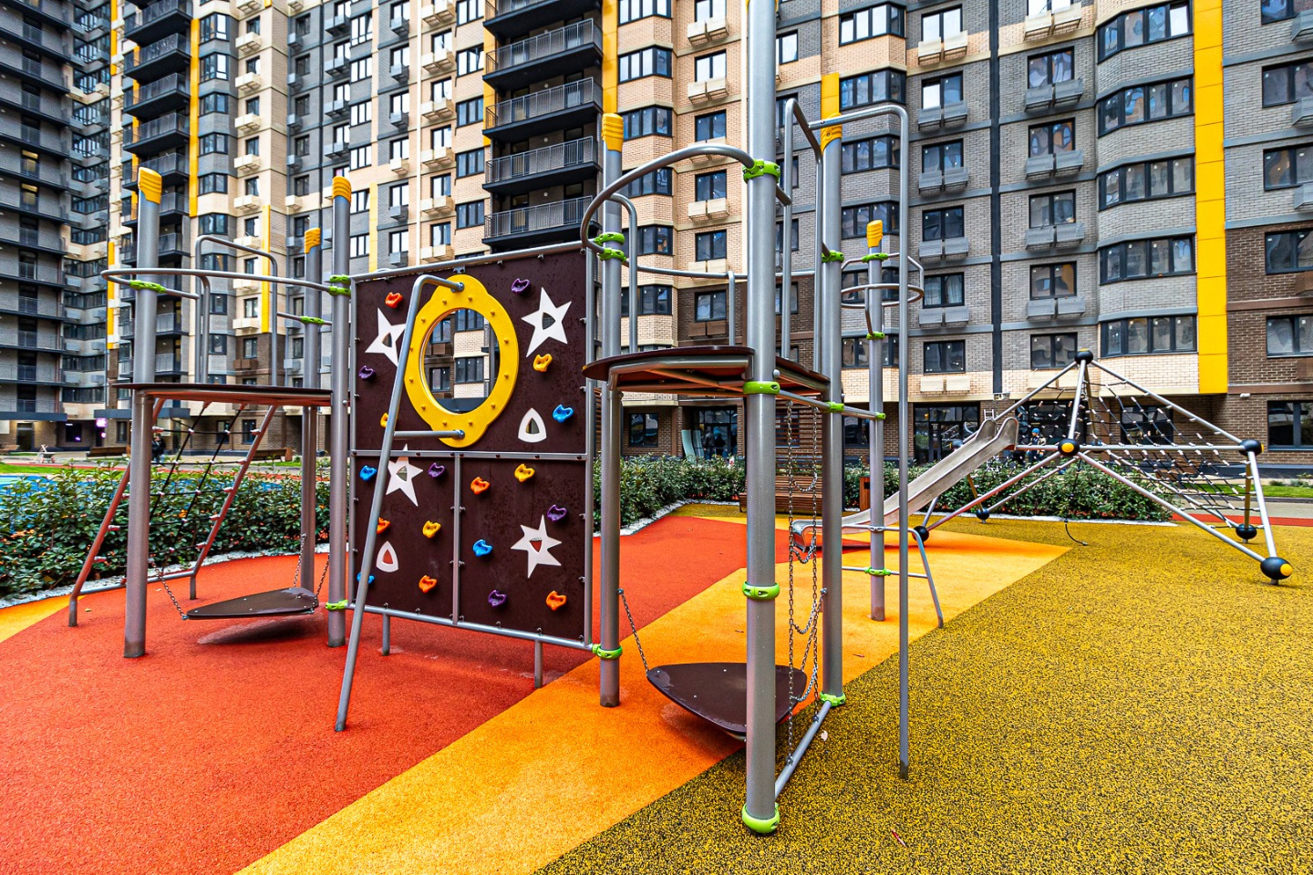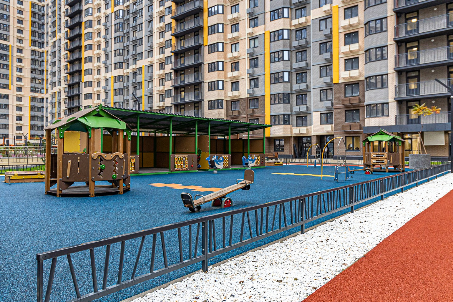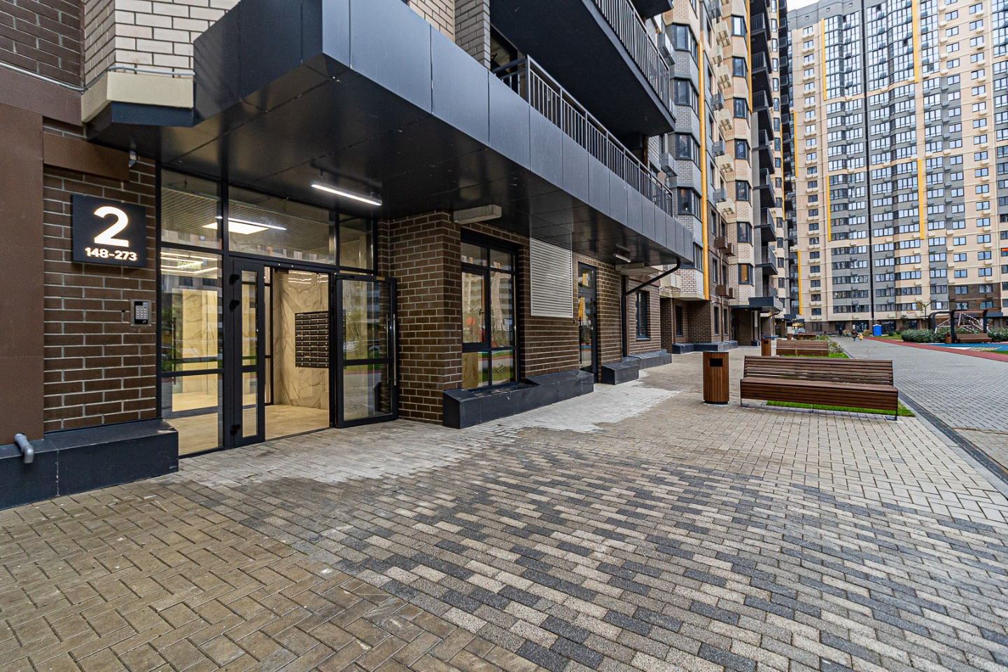 На первых этажах работают магазины, аптеки и сервисы — всё необходимое в шаговой доступности.
