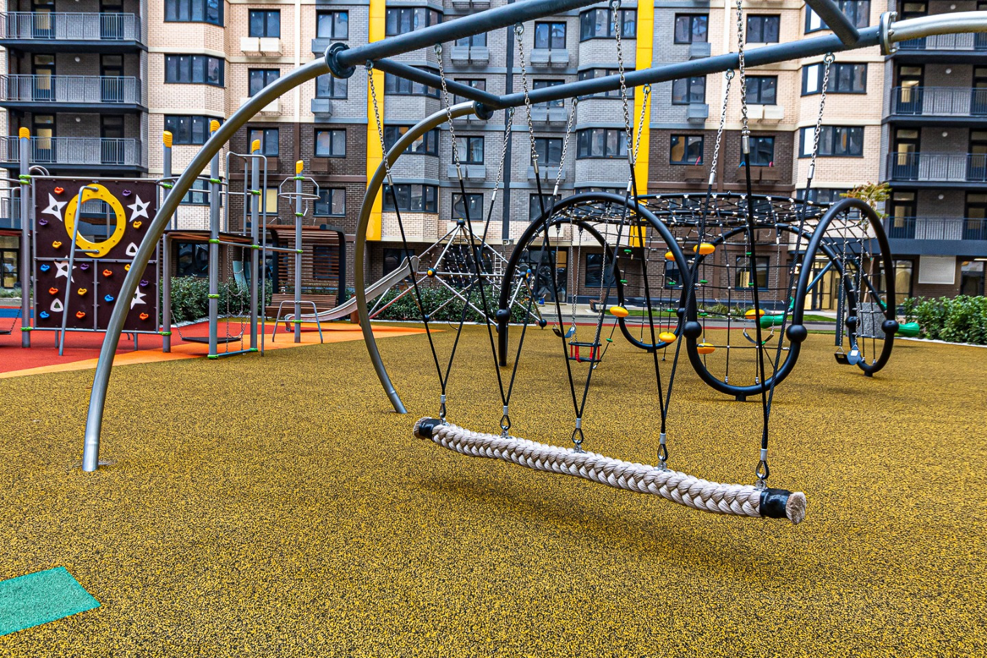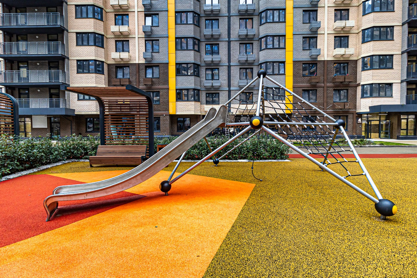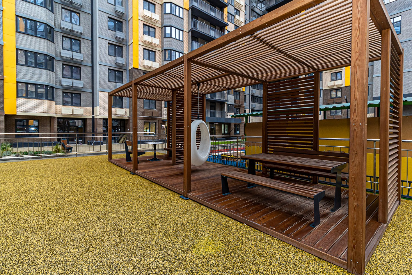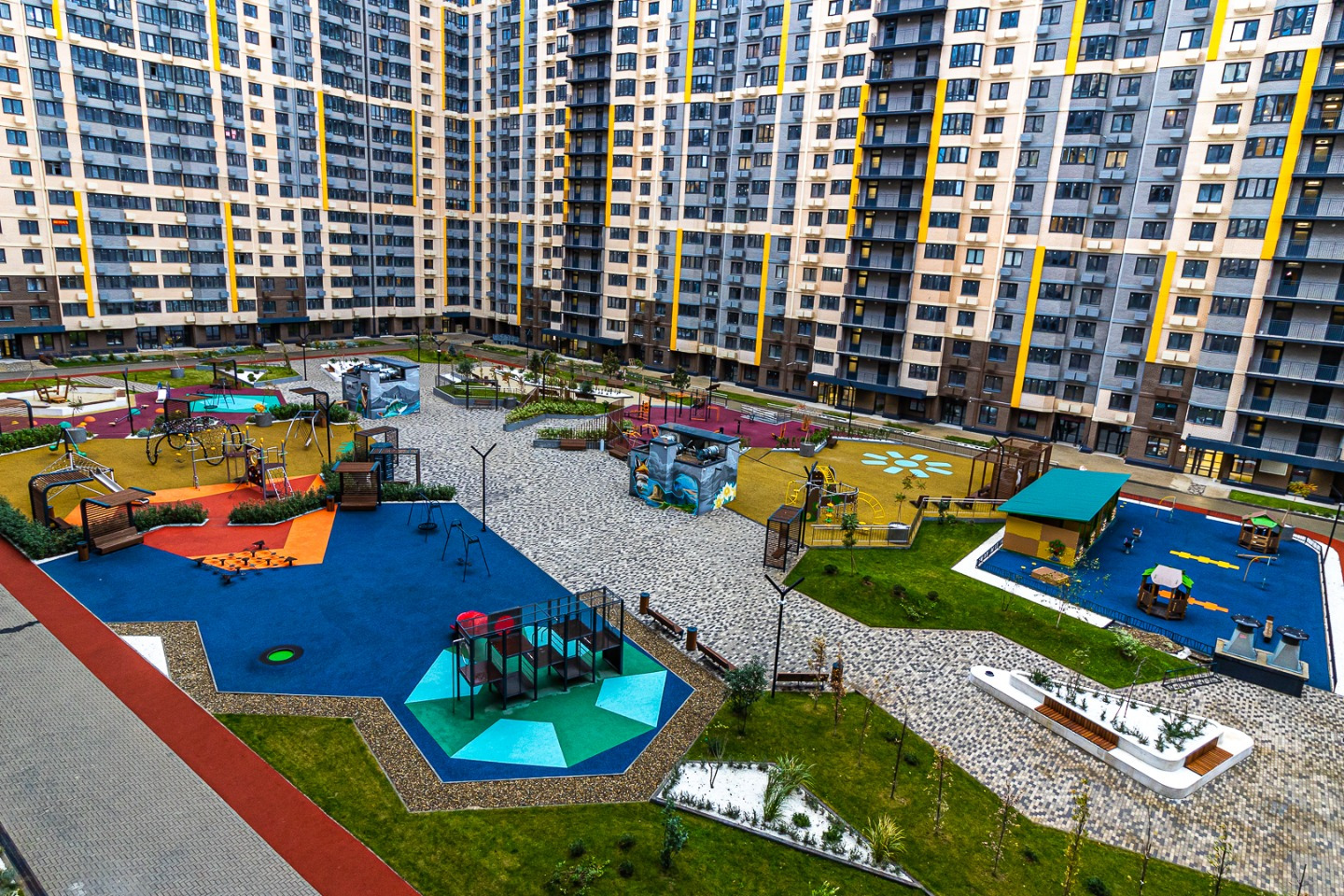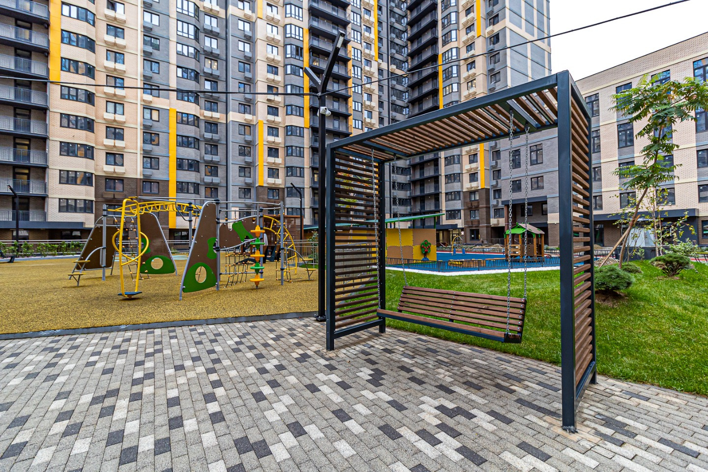 Современный двор без машин — безопасно для детей и тихо для взрослых.