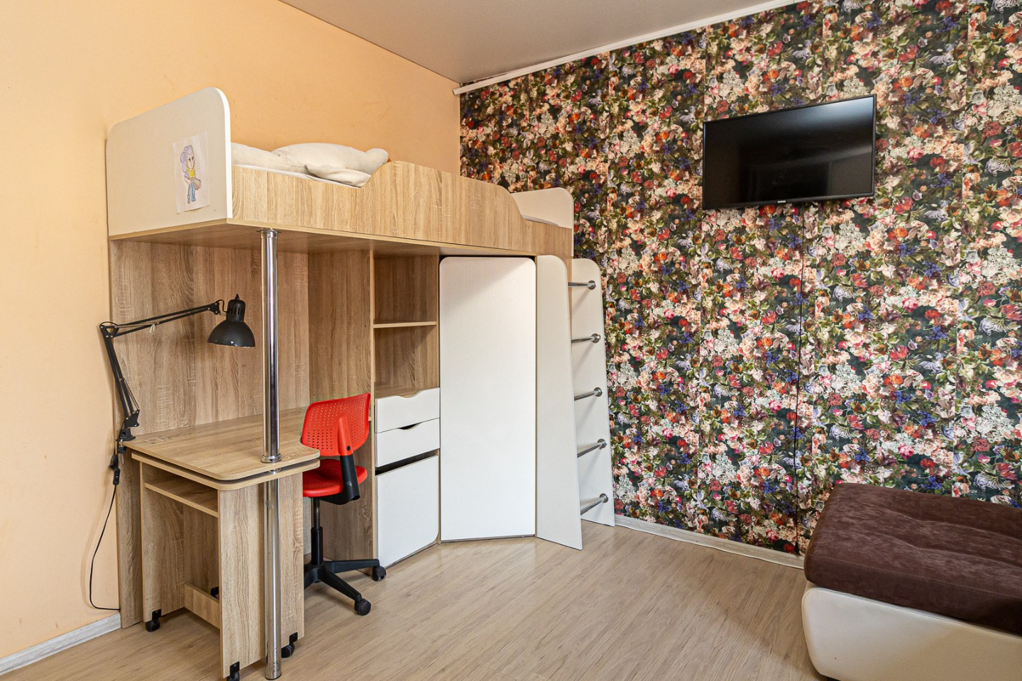 Планировка: Продуманная, без лишних коридоров: 2 изолированные комнаты + кухня-гостиная.